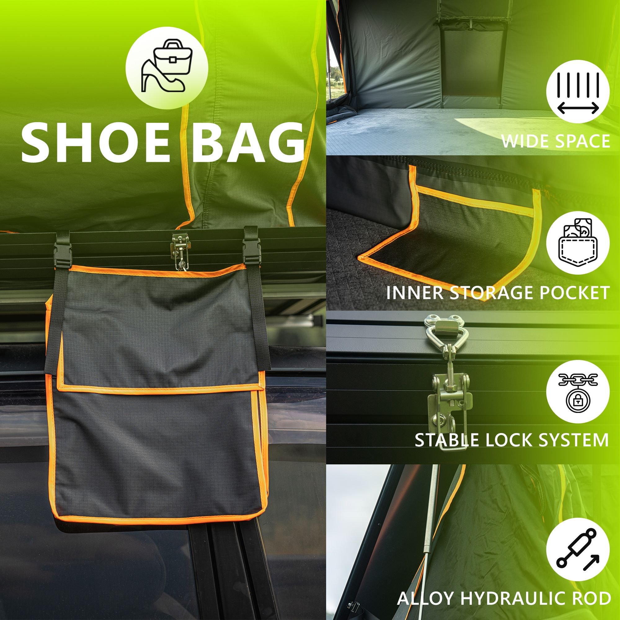 4. Tents include a 7.6 FT ladder, 2 detachable pockets and Interior tape lights